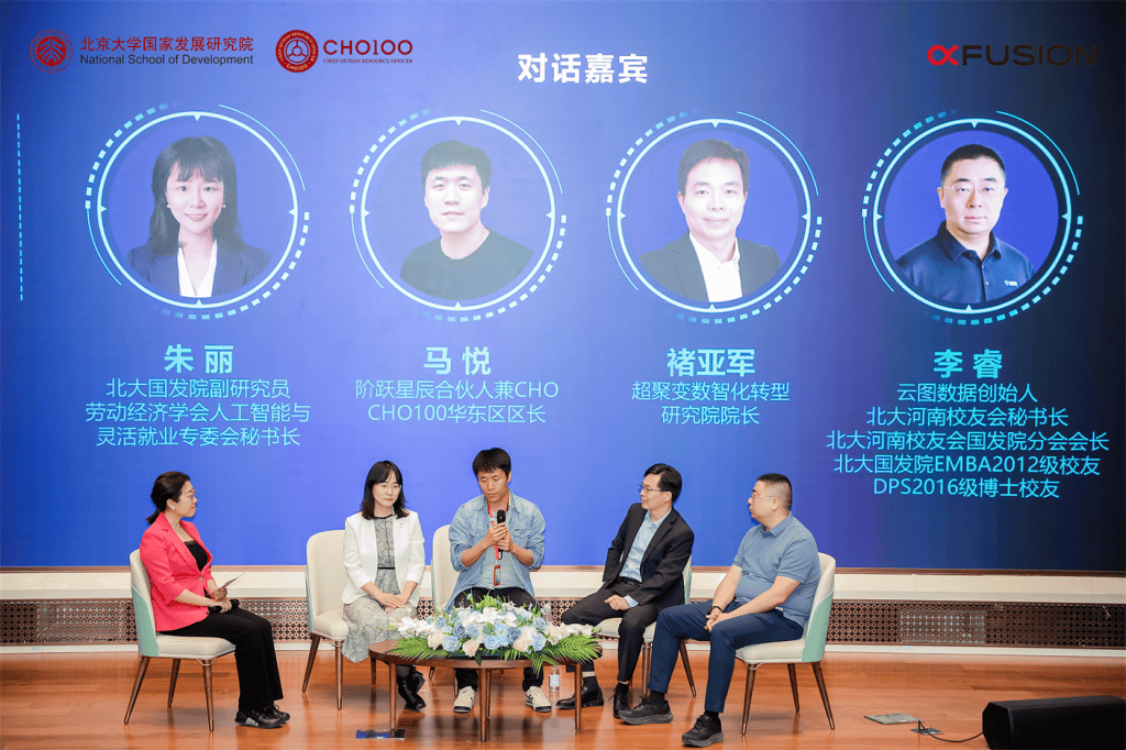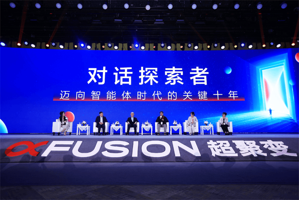 在大会“对话·探索者”圆桌论坛中,超聚变数字技术有限公司董事长兼CEO刘宏云、微软(中国)有限公司首席技术官韦青、优必选科技股份有限公司副总裁付春江、中科加禾创始人及CEO崔慧敏、赛迪顾问股份有限公司副总裁宋宇等嘉宾,以及主持人甲子光年创始人、CEO张一甲,就智能体发展的影响、企业的挑战与机会、面对变化的准备等议题开展精彩讨论,并与参会观众精彩互动,引发全场热烈讨论和积极反响。